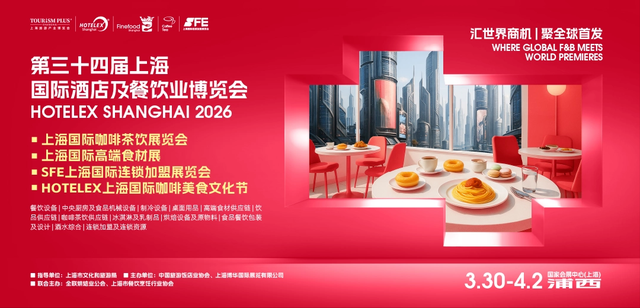 2026年3月30日至4月2日,第三十四屆上海國(guó)際酒店及餐飲業(yè)博覽會(huì)(HOTELEX Shanghai)將在上海浦西·虹橋國(guó)家會(huì)展中心盛大舉辦。本屆展會(huì)規(guī)模達(dá)40萬(wàn)平方米,匯聚超3000家優(yōu)質(zhì)展商,預(yù)計(jì)吸引逾30萬(wàn)酒店餐飲行業(yè)專業(yè)觀眾與買家到場(chǎng),共同探討行業(yè)趨勢(shì)、對(duì)接商業(yè)資源、見證創(chuàng)新成果。
