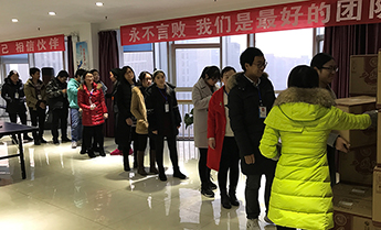 火爆網(wǎng)全體員工領(lǐng)取春節(jié)福利現(xiàn)場(chǎng)