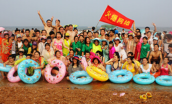 火爆網(wǎng)全體員工在燈塔前的合影留念